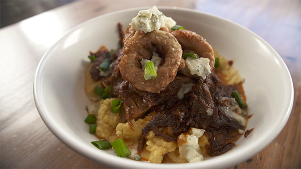 You’ve probably seen us post about it, but we can’t stop thinking about the Coca Cola BBQ braised brisket. It has deep flavor and earthy sweetness, and it’s served on polenta with beer battered onion rings and blue cheese, topped with some green onion for color and flavor. We also loved the Salmon BLT and the fluffy buckwheat pancakes.