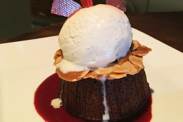 Anthony is a big chocolate fan, so the Bonfire Chocolate Cake is his clear winner. Served with vanilla gelato, almond florentine, red wine berry coulis & topped with pieces of sugar glass (yes, these are edible!)